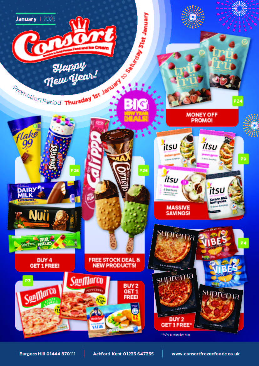 Consort Frozen Foods, specialist frozen wholesaler to the south East of England start the year as they mean to go on with a bumper promotional package to fill your freezer.