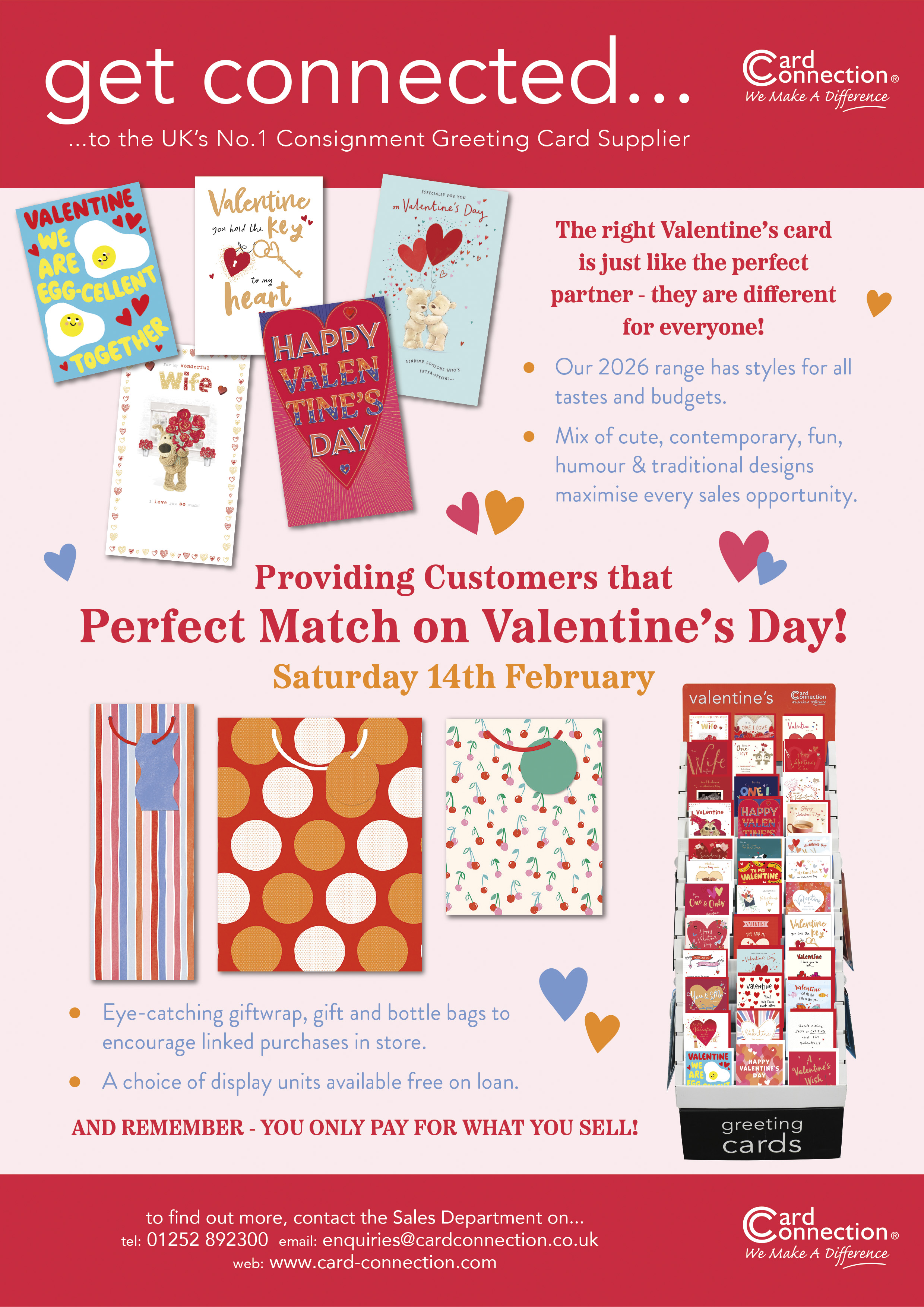 Click on the pic to see the flyer showcasing a curated selection of the Valentine’s range available. Alongside the cards, Card Connection offer a complementary collection of gift bags and gift wrap to help drive additional in store sales. Seasonal gift bag sales have seen significant growth in in recent years, so if you’re not currently stocking them, it may be a valuable opportunity to explore.
